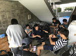 今日の、水球ボックスでダラダラする4回生。