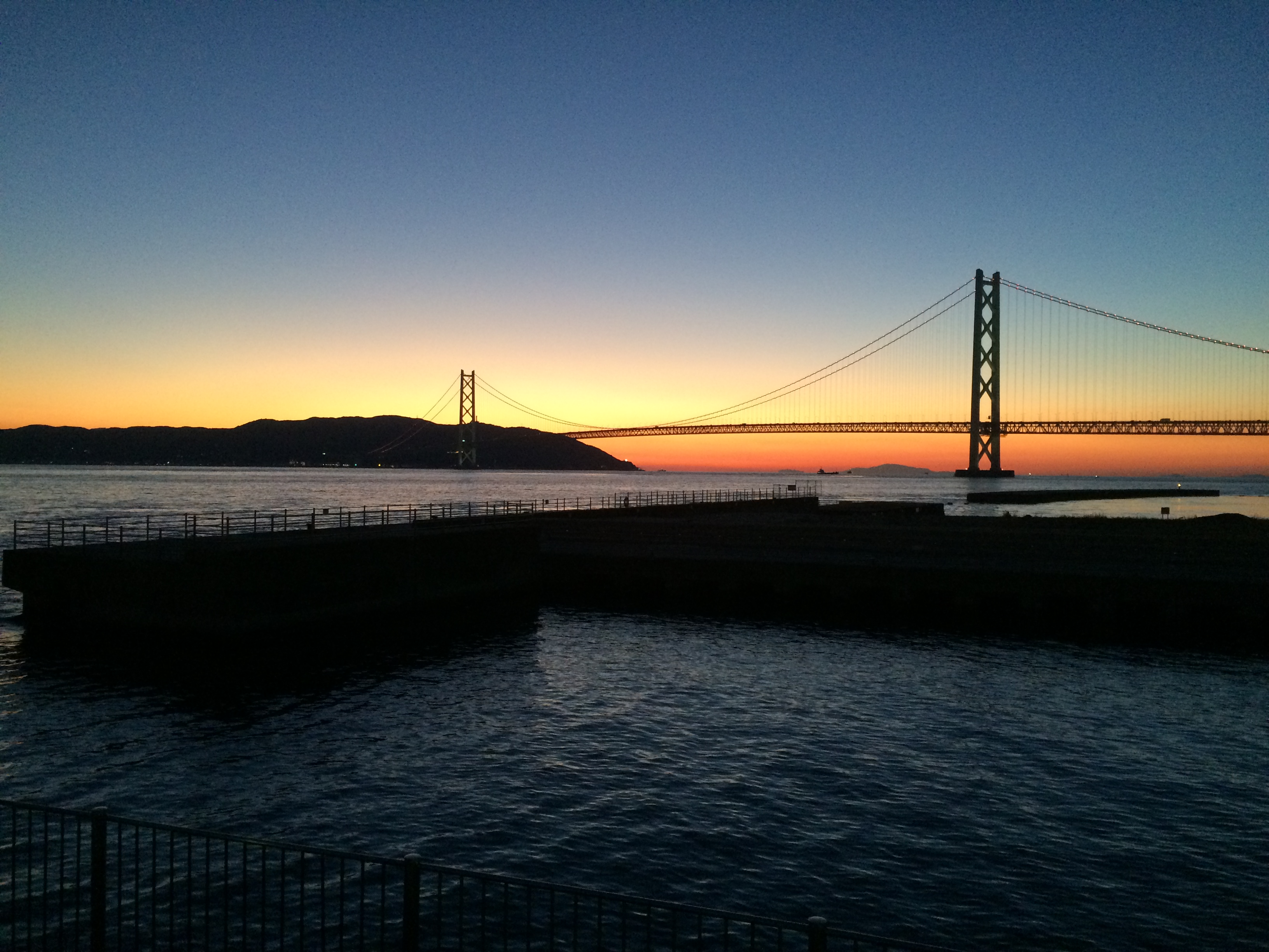 写真は浪人期に気持ちが萎えた時に見に行った、夕日に映える明石海峡大橋です。瀬戸内海は波が穏やかでいいですね。