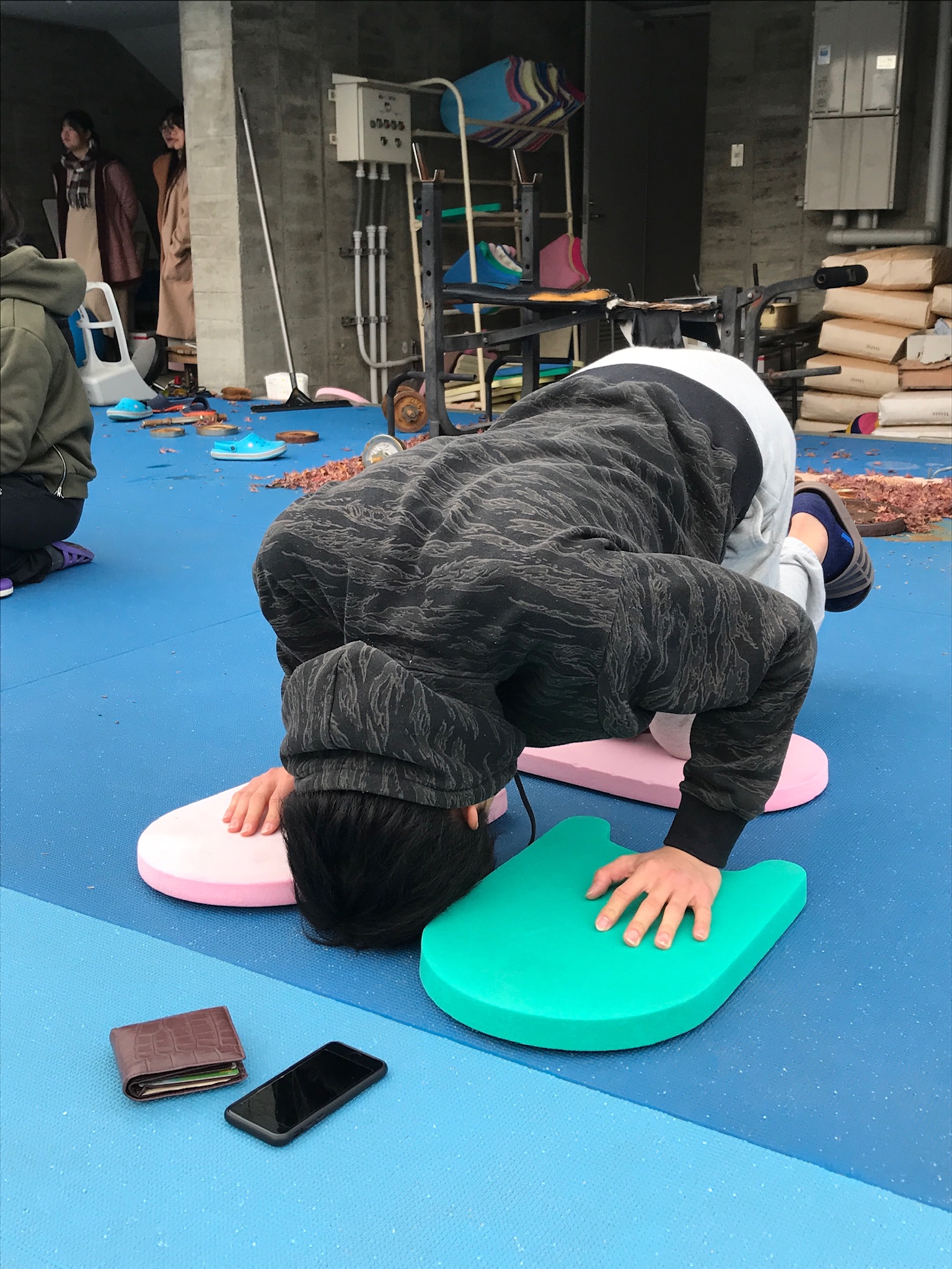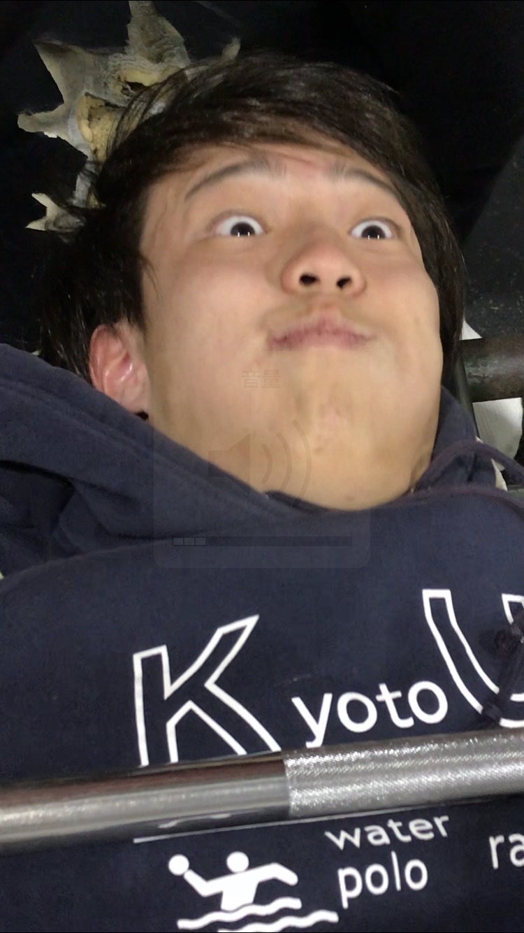 筋トレ中の主将。にらめっこ中ではありません。晒してしまって申し訳ありません。