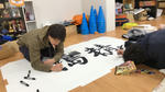おそらくお蔵入りになるであろう、そもそも存在を忘れられているであろう部旗?的なスローガンを書いた旗。制作協力の声がかかって、来たのが4人(主将、主任、1回生(当時)2人)という悲しい状況でした。
