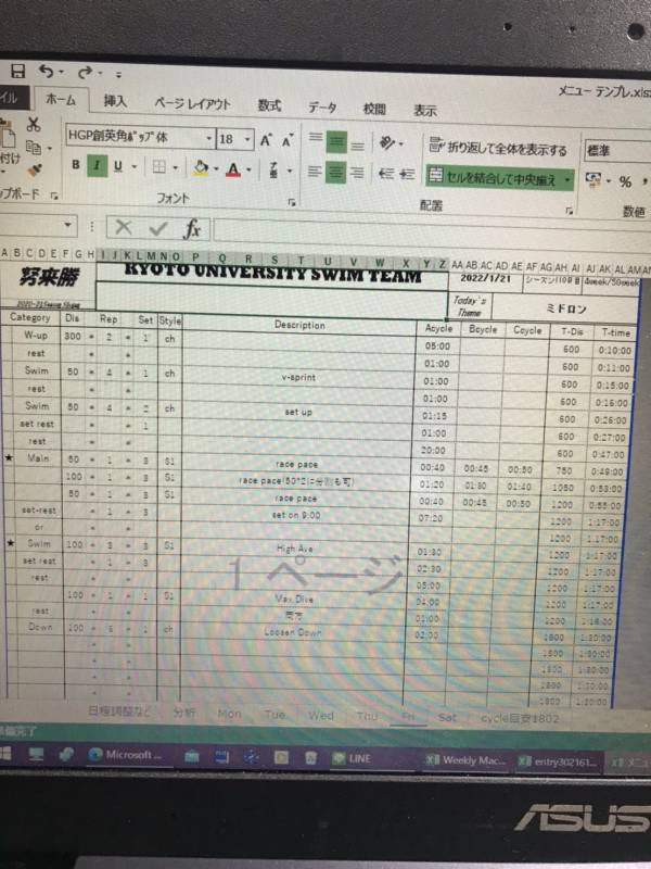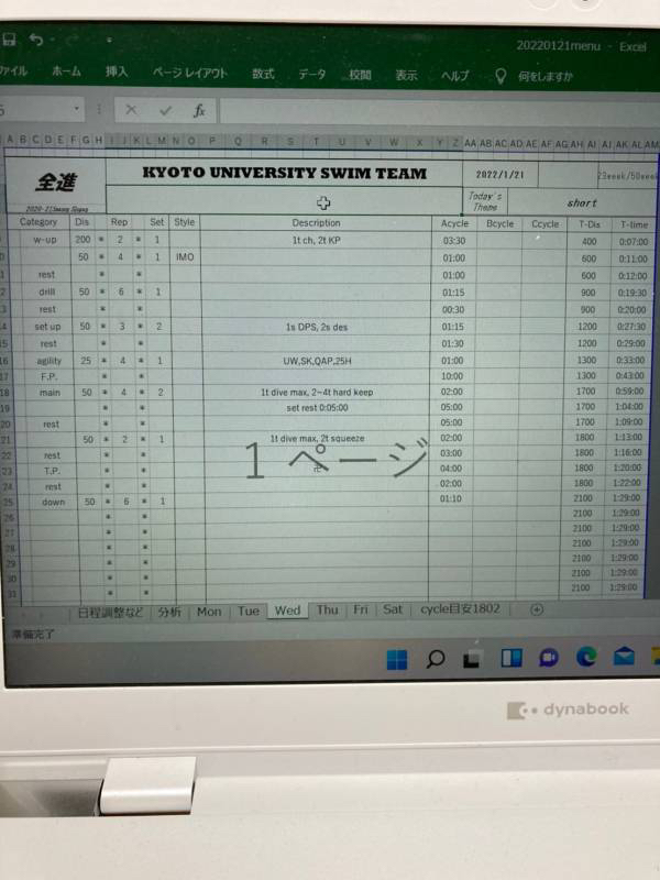 今日の練習メニューです。