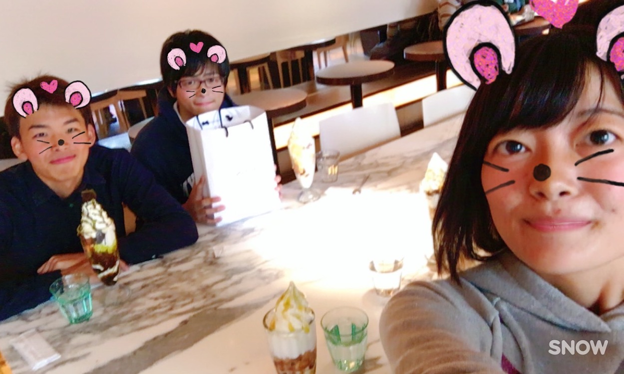 写真はこの前同志社パフェを食べた時の写真です。UMAもいましたが入りきりませんでした。NFでの活躍に期待しろということでしょうか。