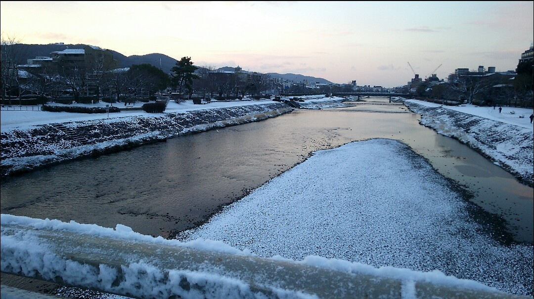 写真は、昨日、日記当たるやろなと思って事前に撮っておいた雪の鴨川です。