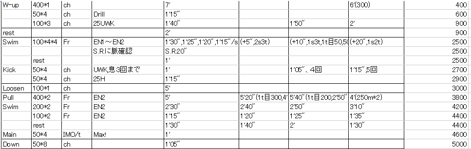 | 種類 | 距離*本数 | 種目 | 説明 | cycle |