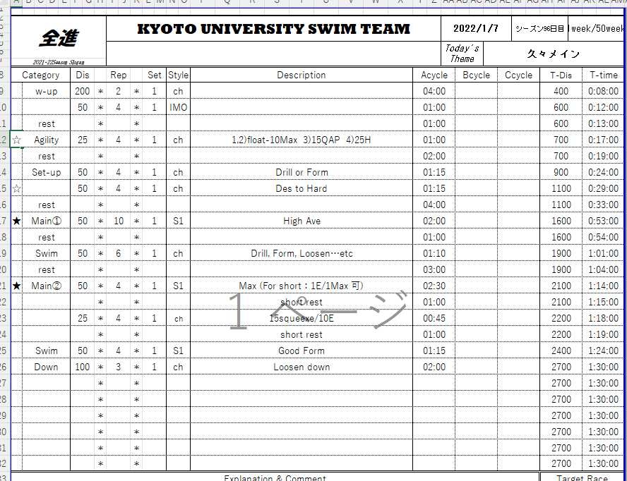 昨日の練習からは、ピッチやキックの出力を上げていく「加点方式」で泳いでみました。