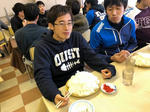 いやー、変わりものの兄貴です。周りがカレーライスを食べている中1人福神漬けライスを食べています。しかもこの量。誰によそわれたのでしょうか。