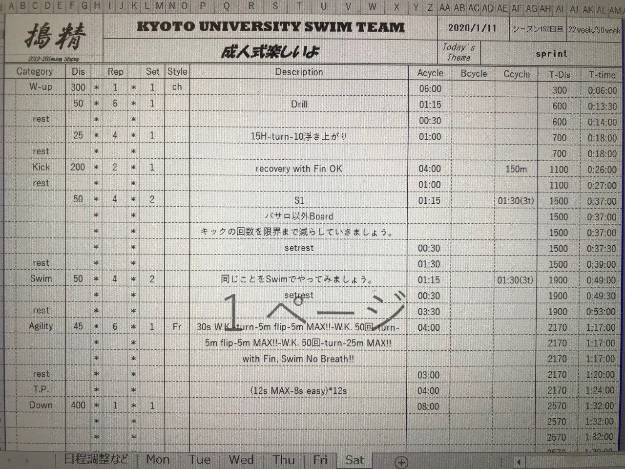 成人式明けで昨日の練習があまりにも体動かさなすぎて、昨日は腕立て、懸垂、腹筋で補強をガッチリめにしました。泳がないとほんと失われると実感しました。今の時期テストとか、いろいろ忙しいと思いますが、最低限練習は休まないことは徹底した方がいいかなと僕は思います。あくまでも自分の感覚ですが。