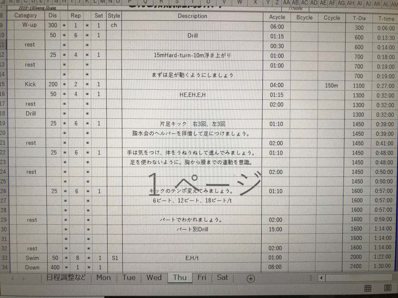 合宿で得た知識を実際に水中でやってみて、自分のものにしてる最中です。何となく泳ぎの変化を実感できて、ものすごく練習が楽しいです。タッチターン失格しないよう気をつけます。
