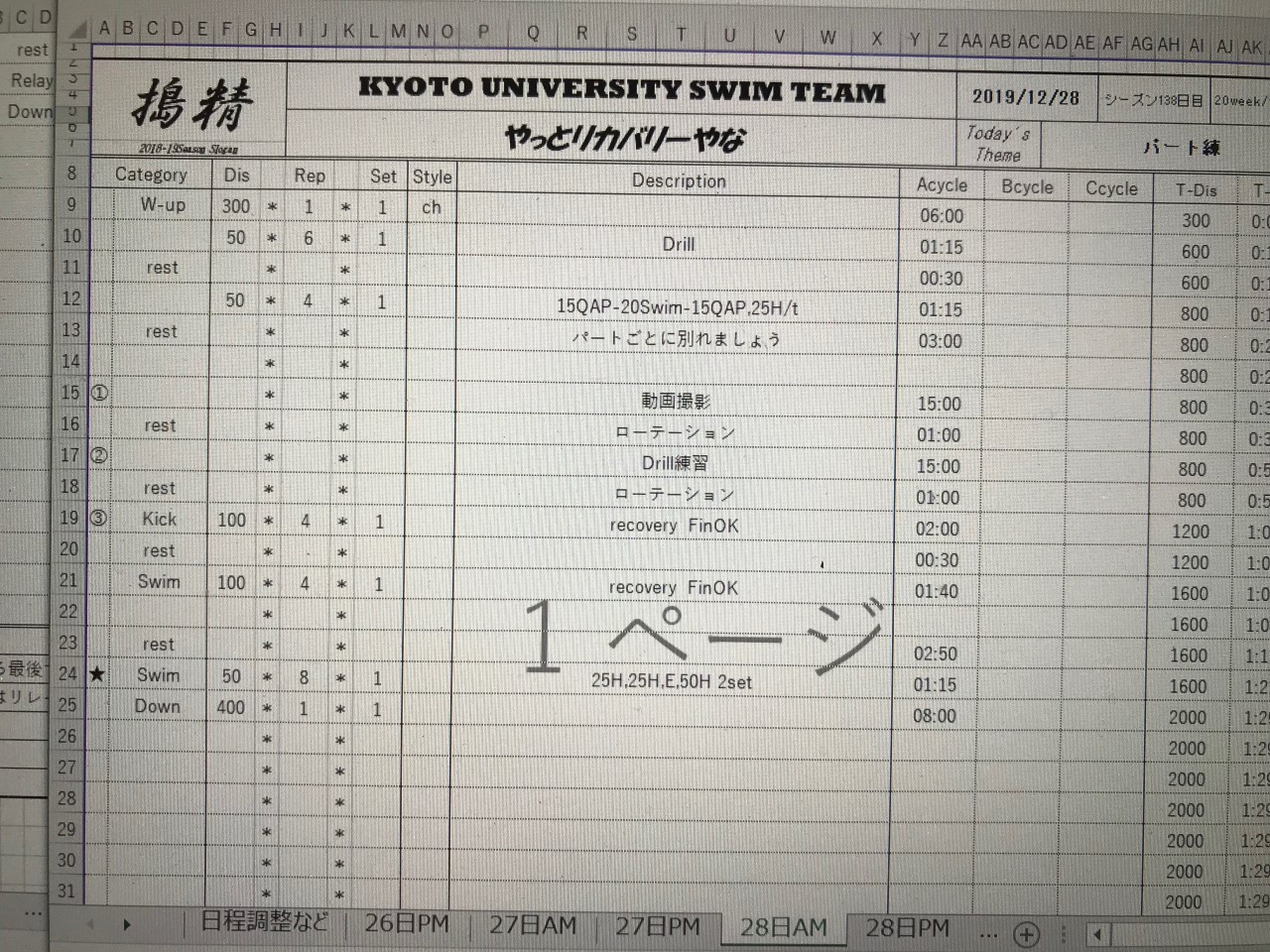 では、やしろ3日目の午後練のメニューは
