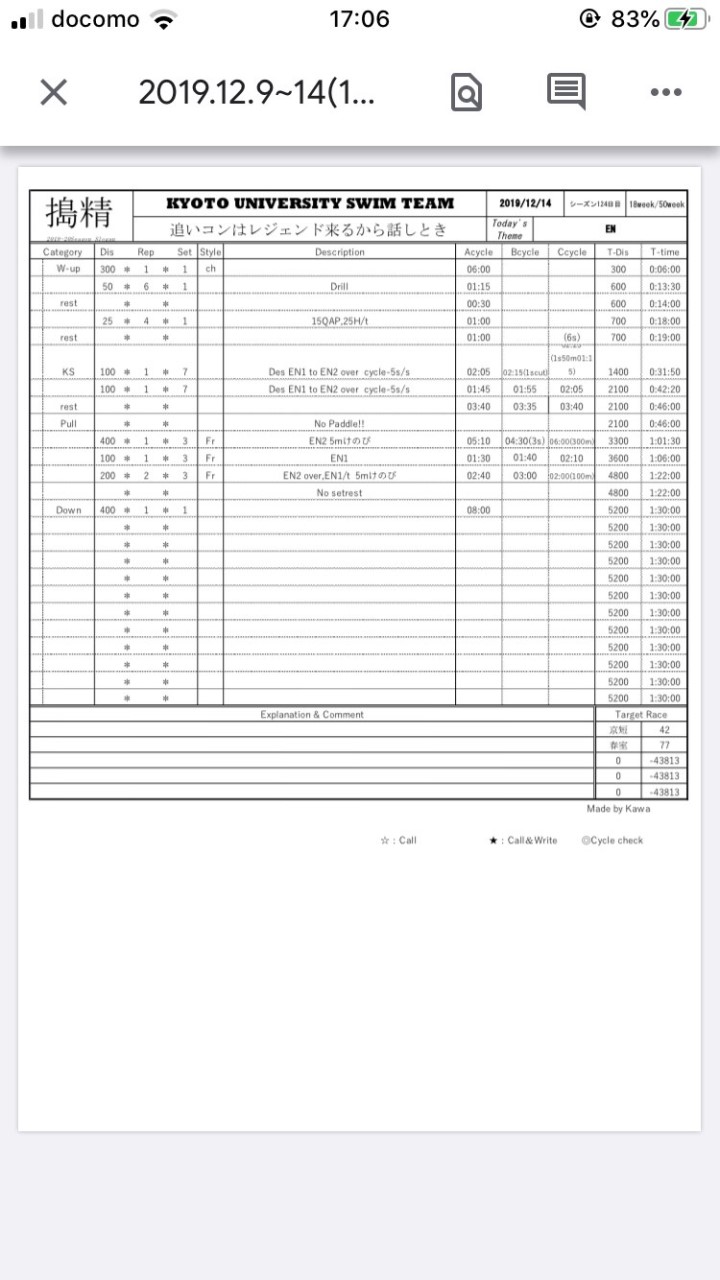 今日のメニューはゆうとさんのメニューで木曜にということでターン練をしてから最後にENをしました。あと、今日はりつきさん、しんじさん、Jさんが来てくださいました。久しぶりに4回生の方ともあえて楽しかったです。