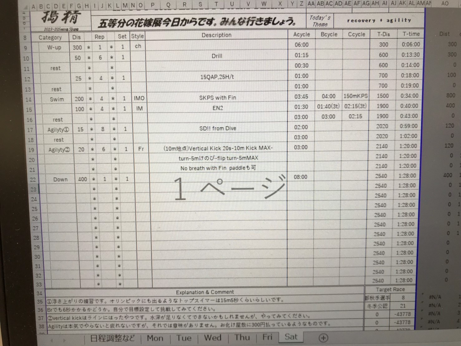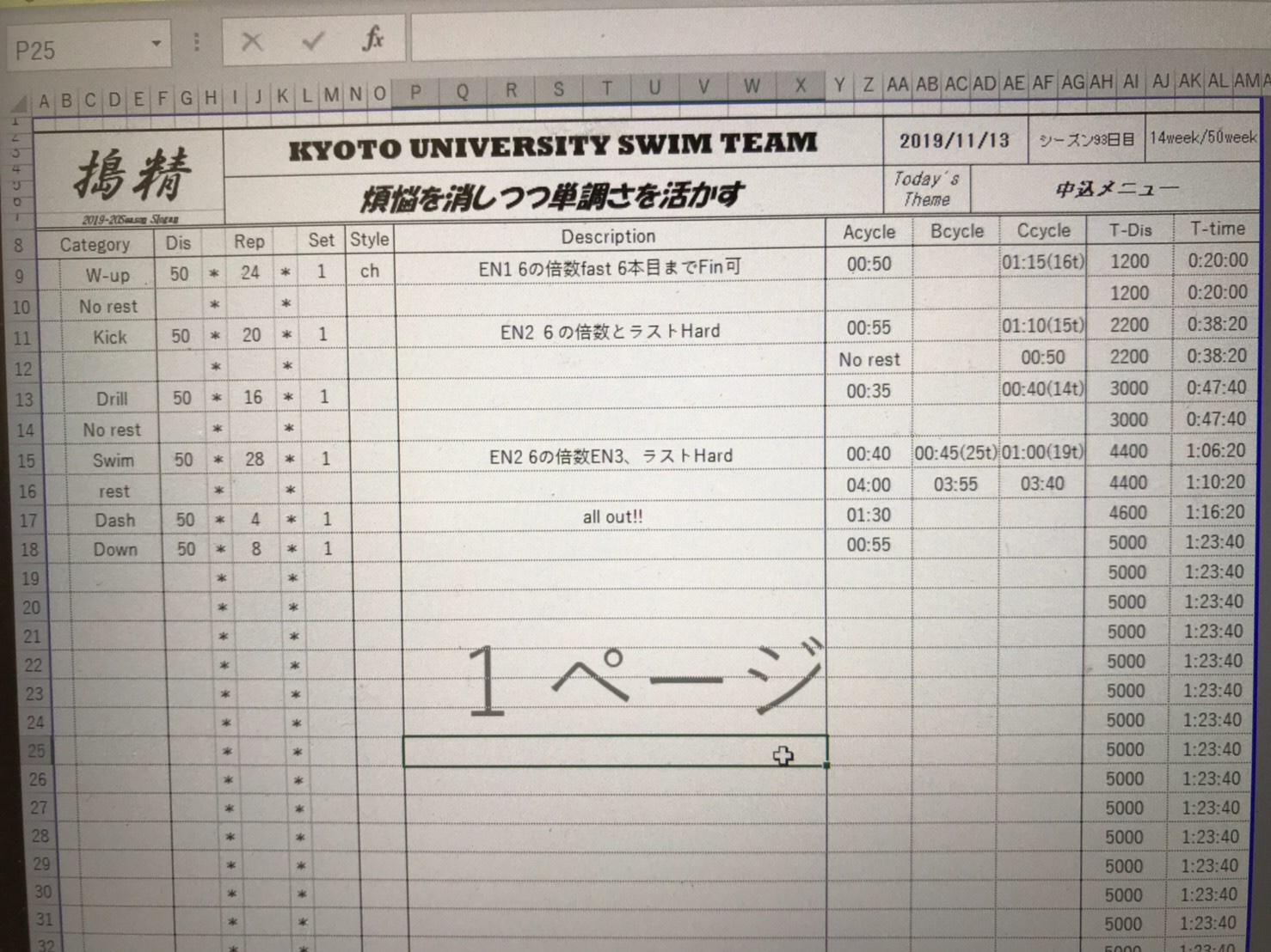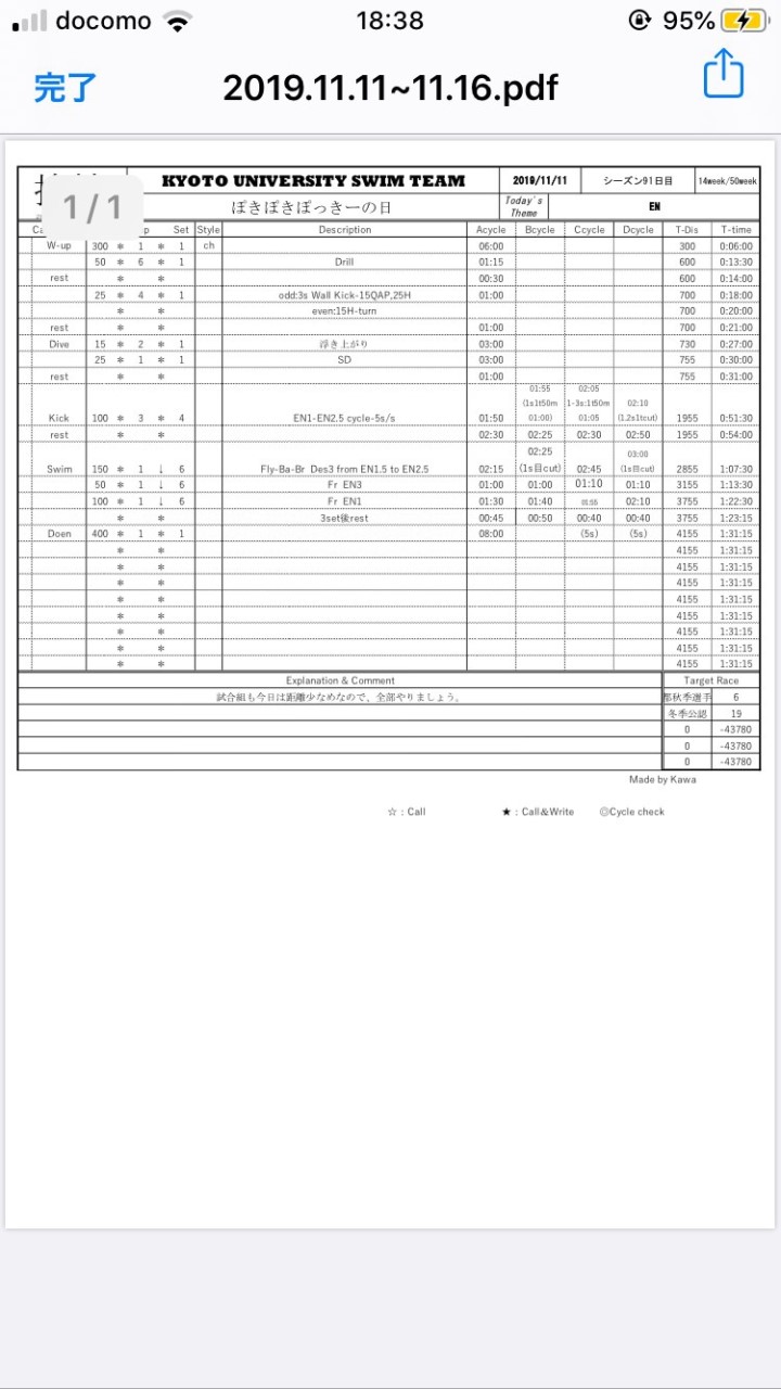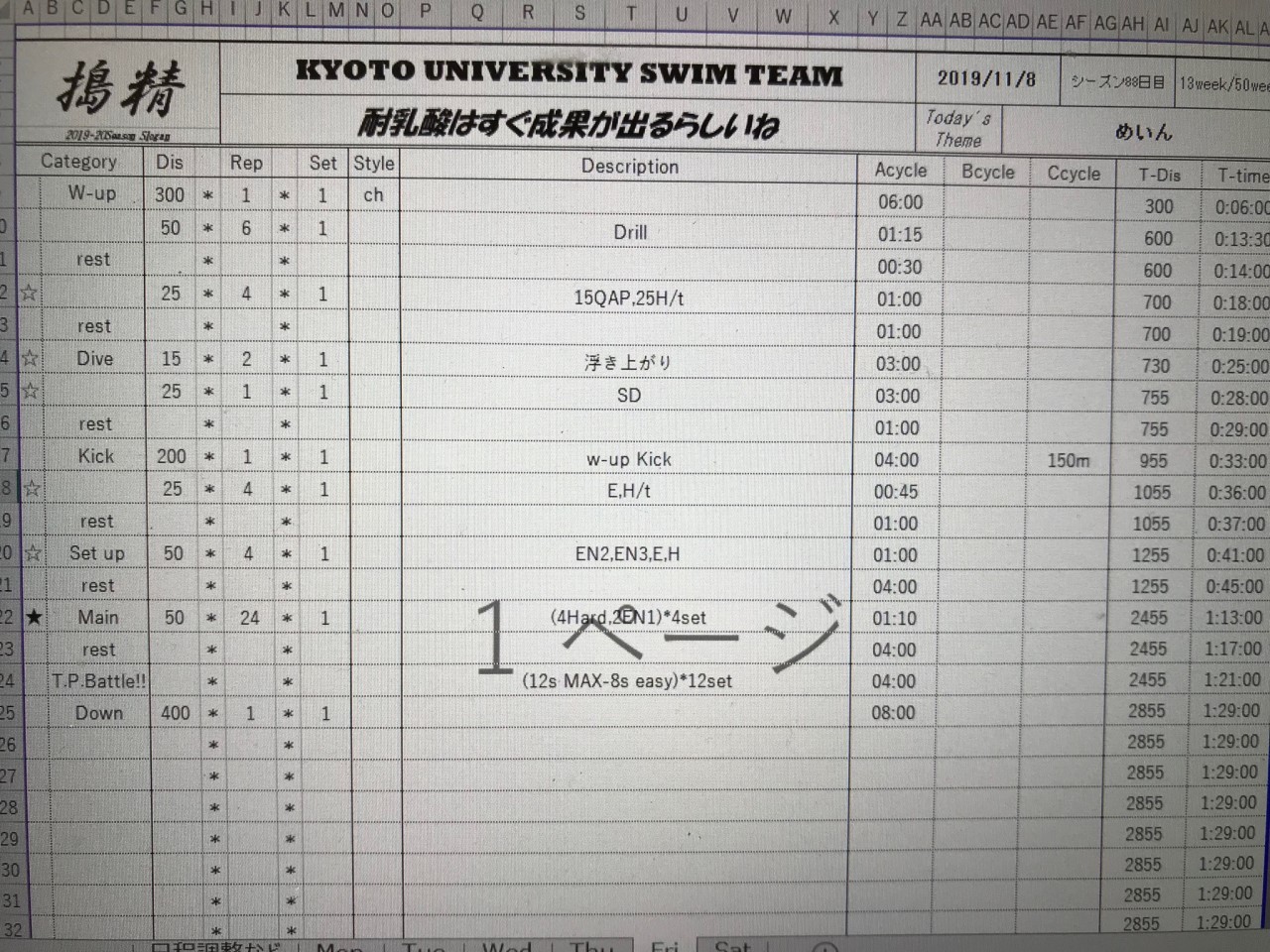 フリーはEN3で泳いだら次のセットOUTしてしまう気がして、飛ばせませんでした。これが妥協です。冒頭に書いた、なぜ速くならないのか、の理由です。