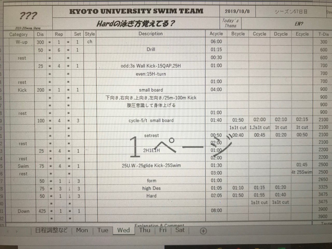 耐乳酸。昨日メニューを見て、きっつ、と思いました。そして今日。みんななんだか暗い雰囲気だな、と思ってましたが、中込さんの「ガンバァ~~~!!」で雰囲気が明るくなったように思いました。中込パイセンさすがです。ただ、メニューは本当にきつかった。50*4*2のdiveの時、スタート台に上がるのが大変大変。生まれたての子鹿並みにふらふらしていました。しっかり耐乳酸できたと思います。足がパンパンになっても最後のフリーでキックを入れることができるようにこれからも耐乳酸頑張っていきます。あい。