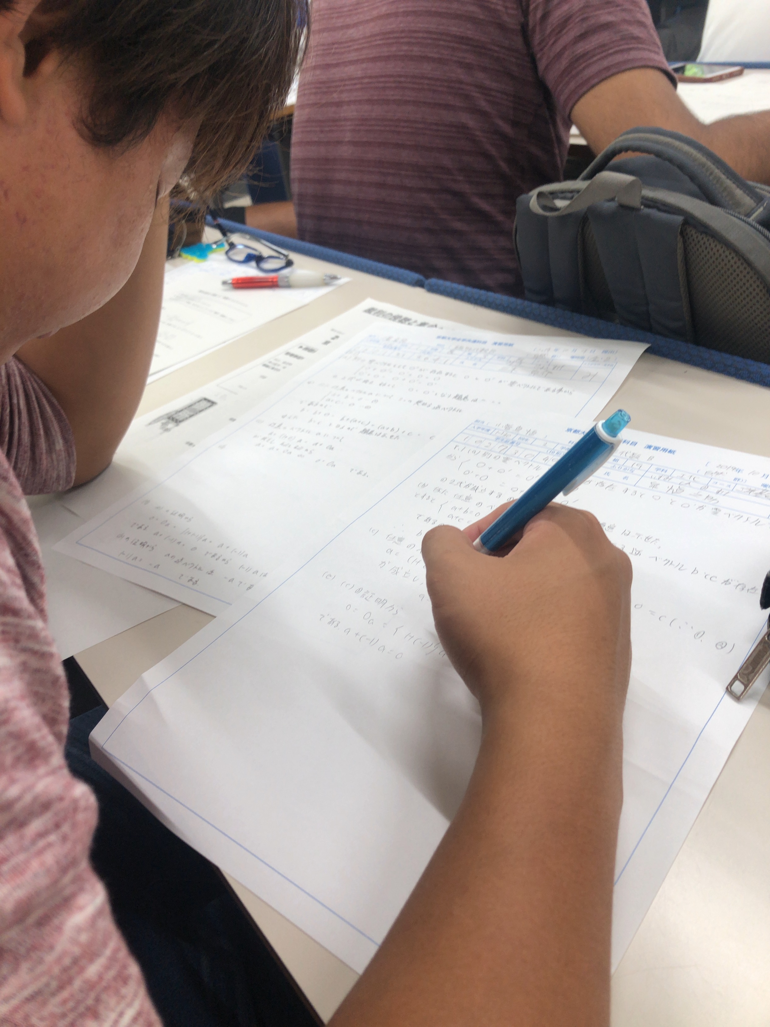 最後に今日の写真を貼って終わります。今日の写真は僕の答案を必死に写す泉さんです。今期は線形取れるといいですね。