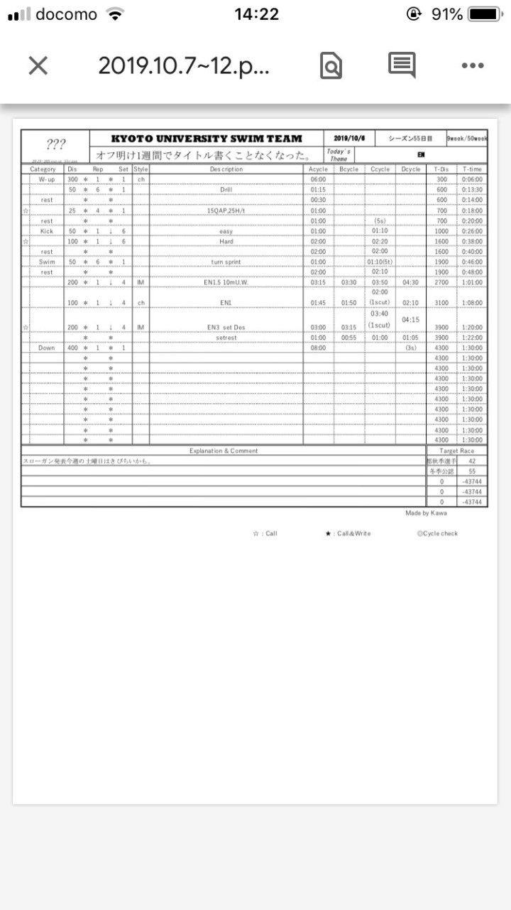 今冬は、フリーのスイムAサイクル、アイエムBサイクル、キックはDサイクル(小声)回れるようになるのと、あと極端なEN専を脱してスプリントどんどん伸ばすのが目標です卍