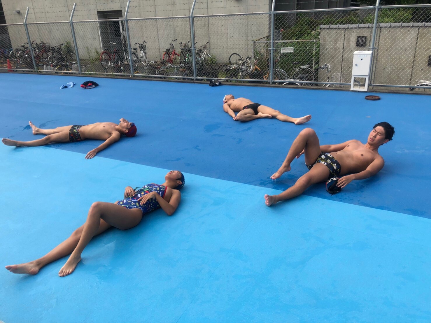 今日はEN気味のテーパーでした。私自身、疲れが結構ある感じがしたのでいつもよりサイクルを落として、疲れを抜きつつ泳ぎの確認をしました。アップ時とダウン時の身体の軽さが全然違ったのでいいテーパーにすることができたと思います。練習前に竜太朗さんが言っていたように、ピークを土日に持っていけるようにそれぞれが調整していきましょう!