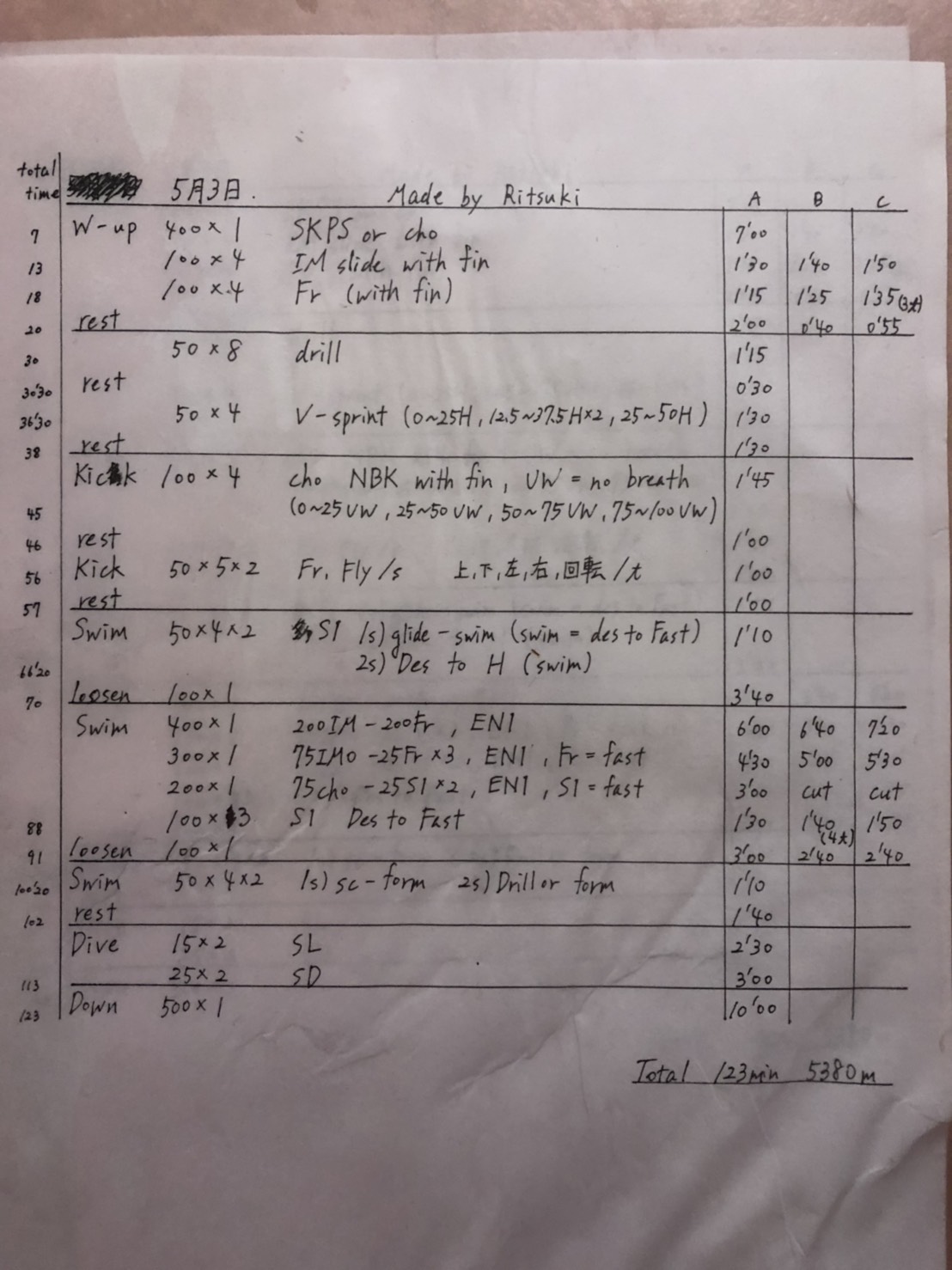 この4日間、とりわけ昨日までの3日間は、練習に来てくださったOBさんや他大の方々、そして新入生のおかげで、いい雰囲気、環境の中で泳がせてもらえたのだと思います。
