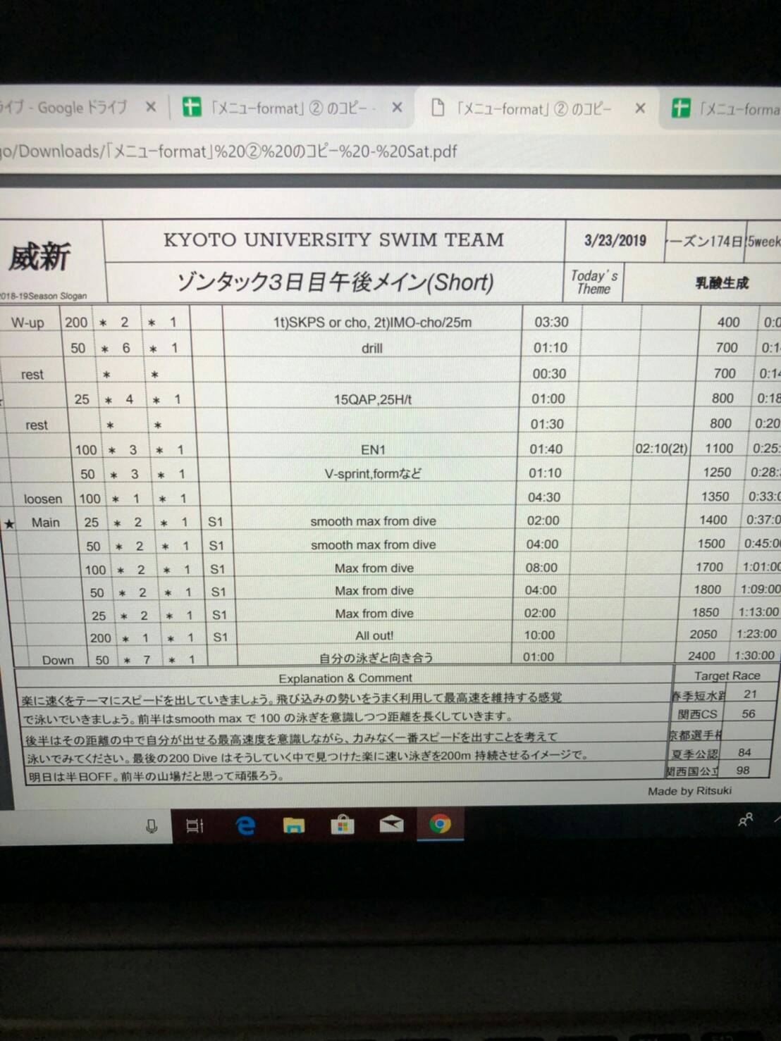 春短までしっかり追い込んで春短で爆発しましょう!そのためにはもう一歩自分の限界を超えていきたいですね。