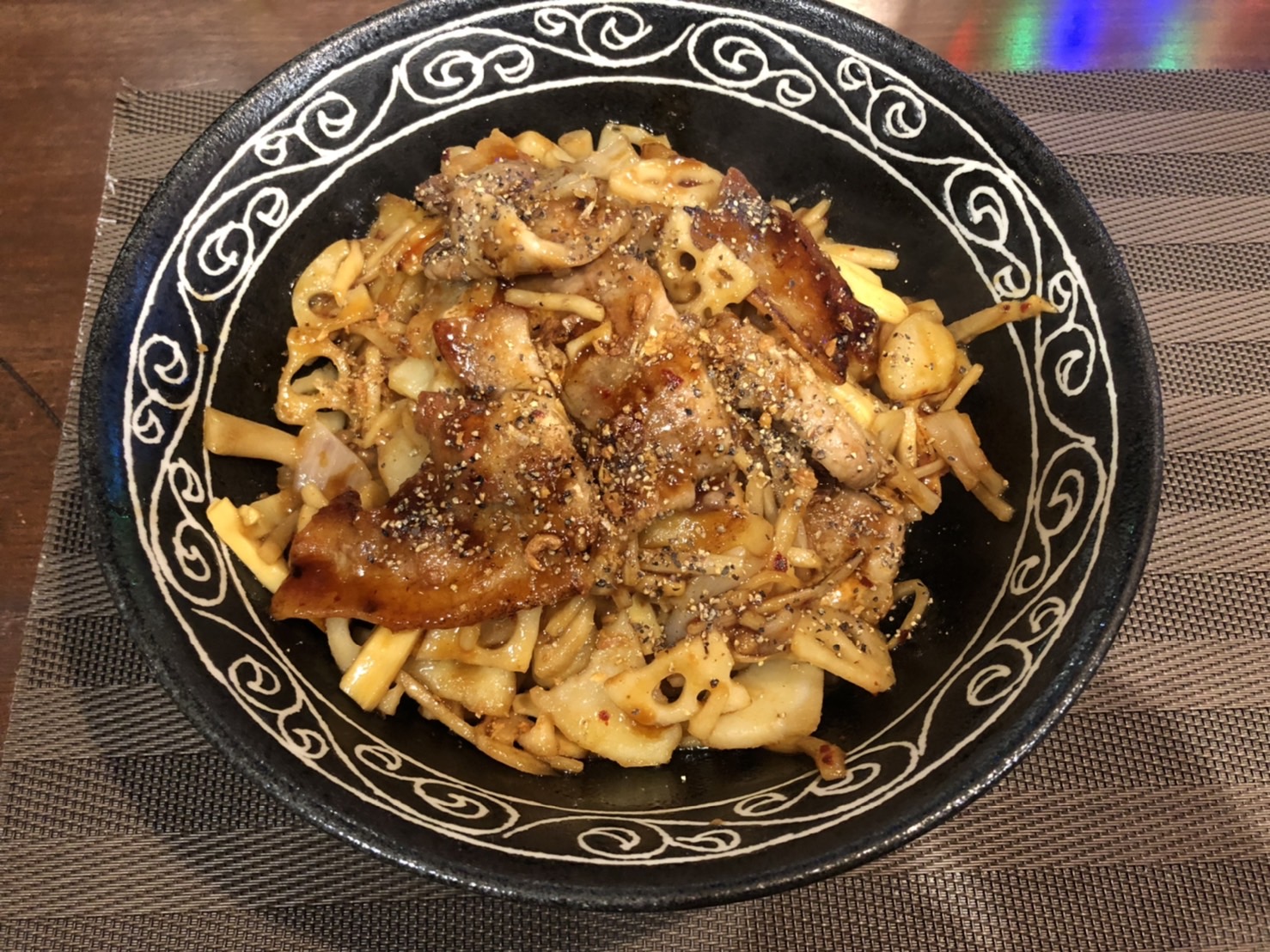 タイカレーで有名らしいですが創作どんぶりを頼んでみたところ、レンコンのシャキシャキ感が合っていておいしかったです。