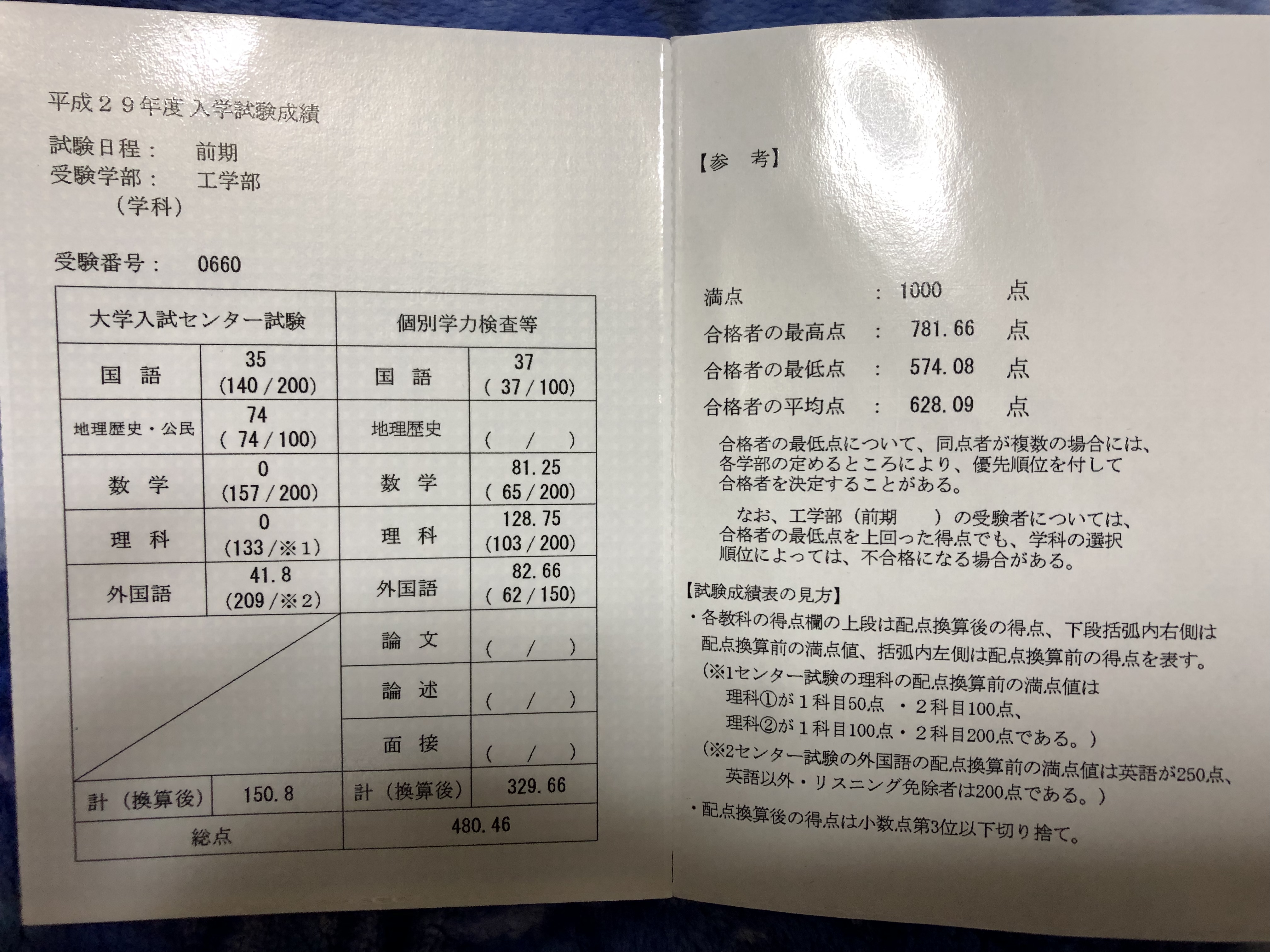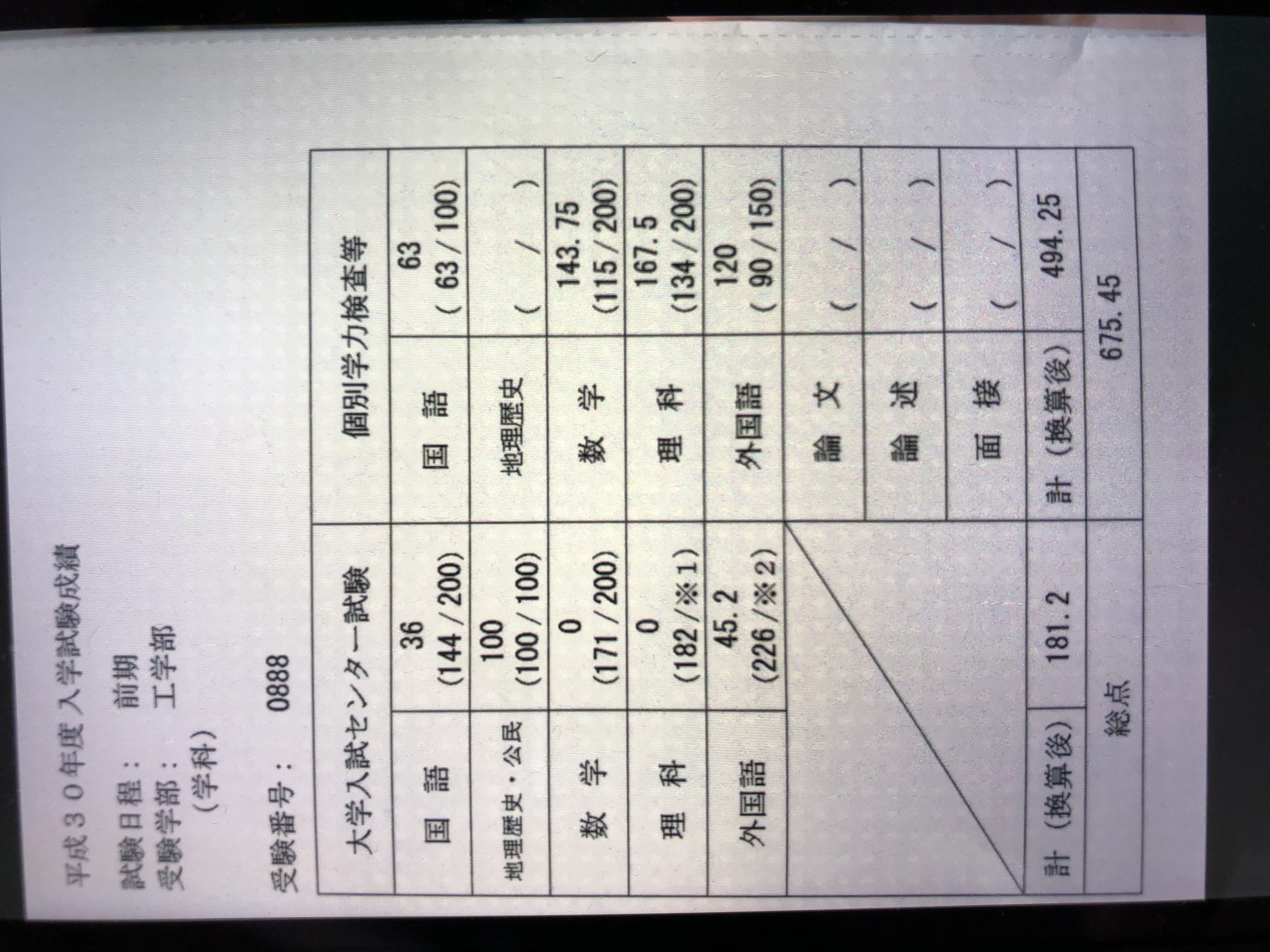 参考までに現役時と浪人時の成績開示をのっけときます。浪人生が勇気を持ってくれたら嬉しいです。応援してます。