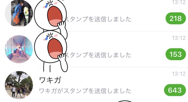下の画像は泉のライントークです。泉はライン友達の名前を勝手に変えるのでぼくはワキガになっています。その上がなつみさんでそのさらに上がかなこさんです。名前は伏せときます。先週の土曜日、3人で泉に同時スタンプ連打攻撃をしかけました。見事1000件突破達成いたしました!!(*^◯^*)