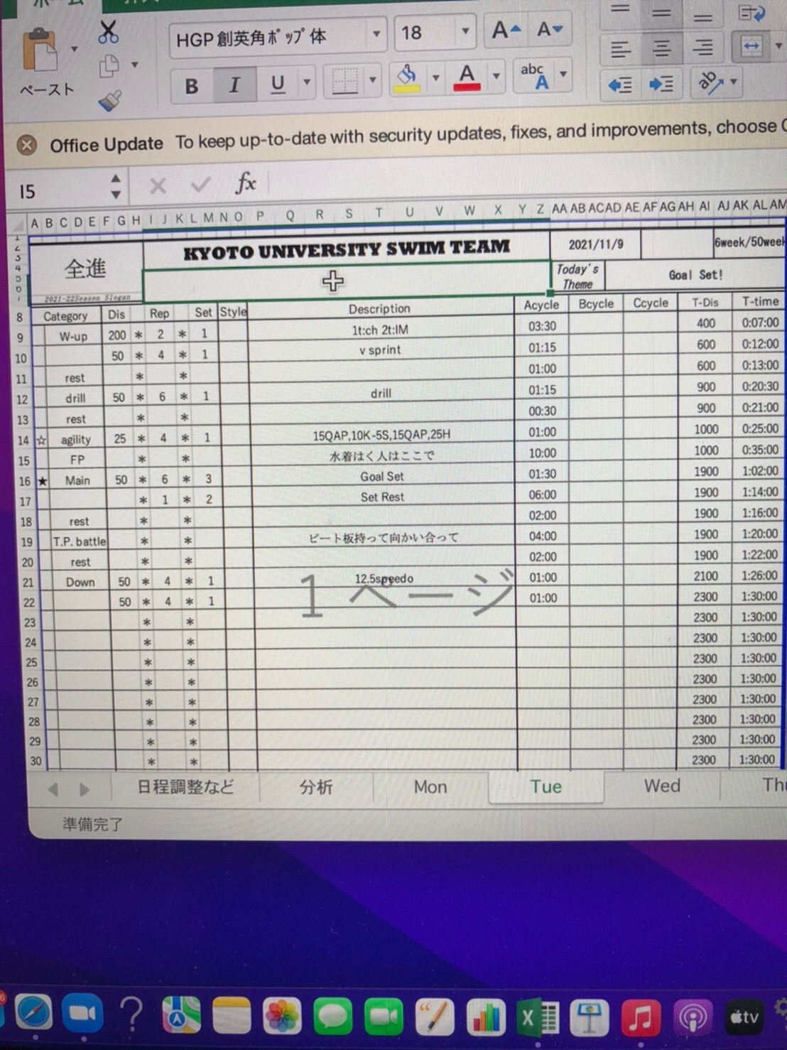 まわりの一回生の伸びとか見てても、正直、今の水泳に対する取り組み方の限界を感じてます。このまま現状維持の練習してても楽しくないよなぁ、、とか思ったり。