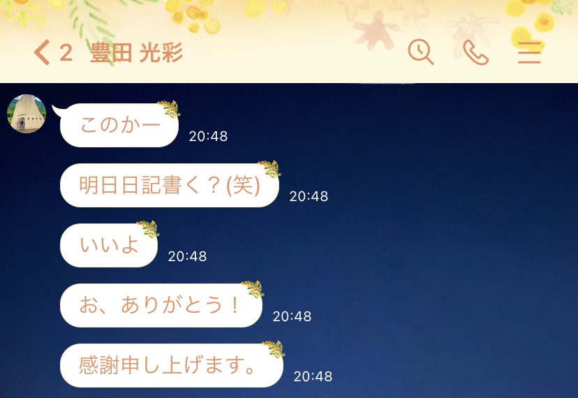 君たちとは、後輩の中で一番長い時間を過ごしてきましたね。楽しいことも辛いこともたくさん経験した。NFもラーメン巡りもやしろも、思い出を共有できるのは君たちだけです。でも来週にはもう僕たちの代は誰も練習に来ません。君たちのチームになります。自分のことだけじゃなくて、チーム全体の事を考えなきゃいけません。きっと今まで経験したこともないような問題にもぶち当たります。主将主任は同期を頼って、他のみんなも主将主任を支えながら、いいチームを作り上げていって下さい。