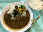 これは北部の夏野菜カレーです。ご飯の上になすが乗っています。まだなすのおいしさが分からないですが、食べ続けていこうと思います。