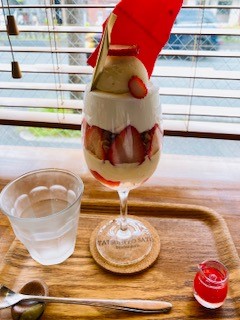 今日は踏水会が開いていないので、ひなことイチゴパフェを食べに行きました。