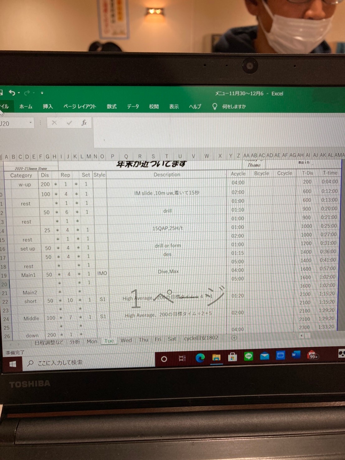 自粛期間にTwitterで見た投稿によると、ボードキック時のボードの浮力は大きく、スイムの時の姿勢とのギャップがあるそうです。なのでキックはグライドキックしました。今週からキックドリルはフィンつけないようにしてます。足で水を捉えるときの微妙な変化を感じたいからです。IMはキックより遅いサイクルで泳いでました。ただ、妥協しました。