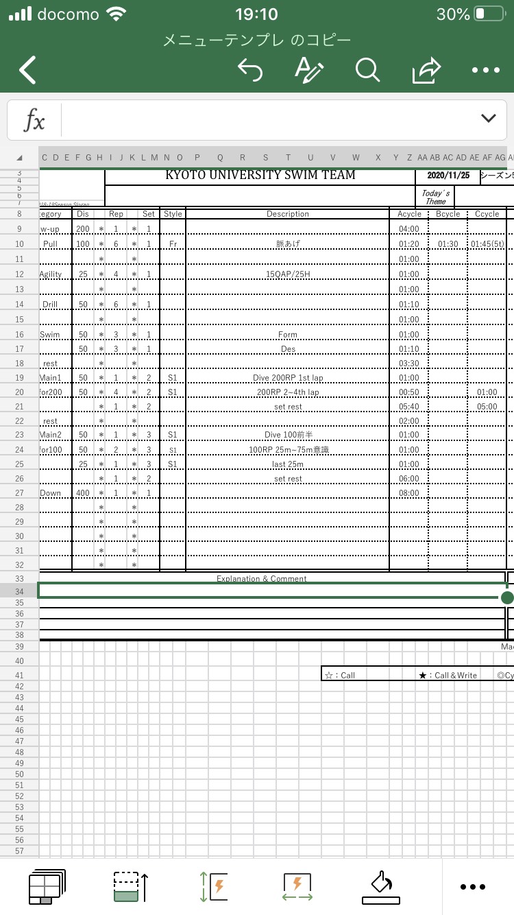 今日のメニューは個人的には課題としている後半種目(ブレフリー)が良い感じでブレは35.0が出ました。ベストです、これは。タイム聞いてかなり驚きました。このかのフリーに着いていこうと思ったらタイム良かったです。フリーも29.3出ました。練習で28出せるようになりたいです。
