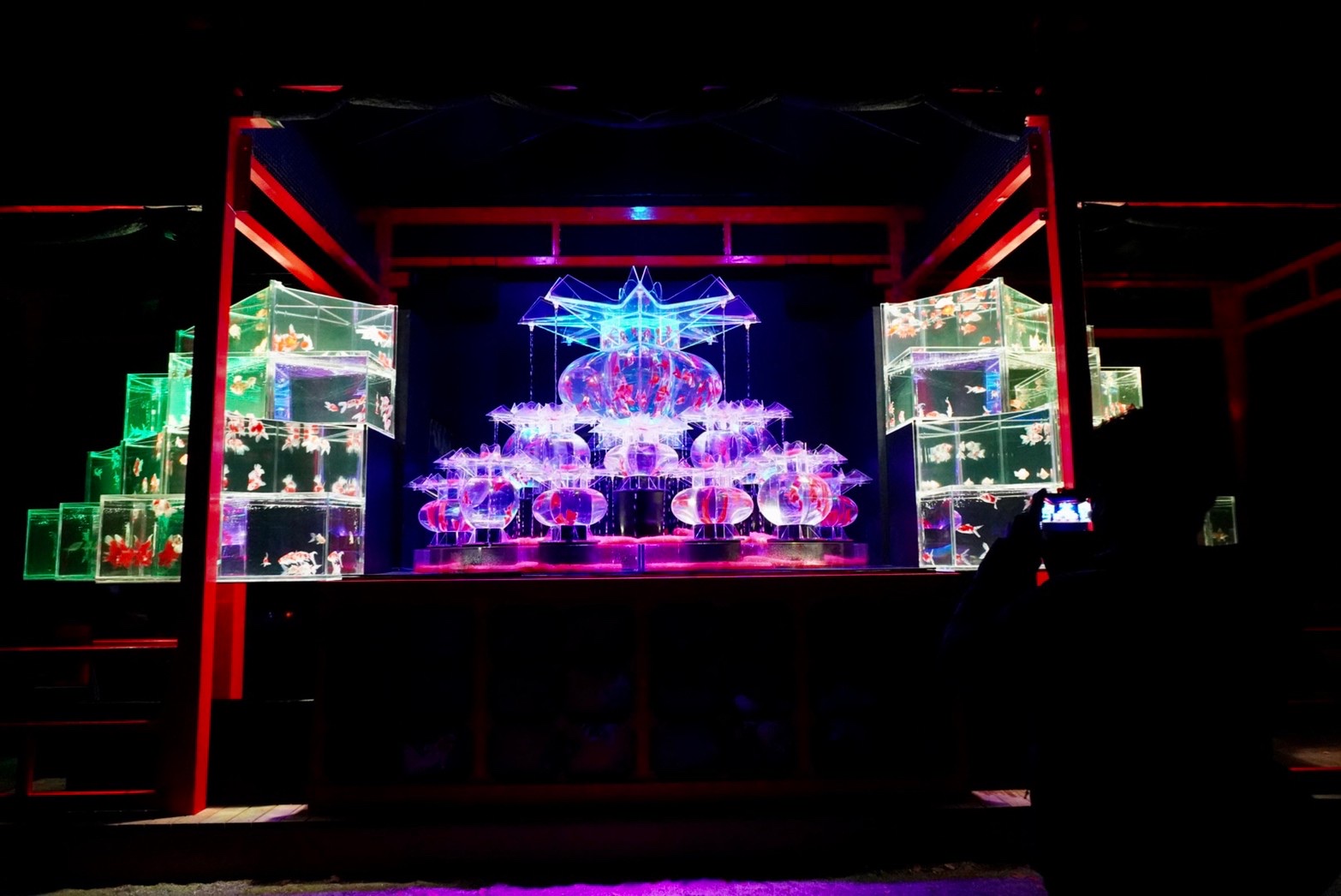 写真は、こないだ2女で行った二条城の金魚のアクアリウムのやつです。寒かったですが、BGMと世界観がマッチしていてとても綺麗でした。オヌヌメです。
