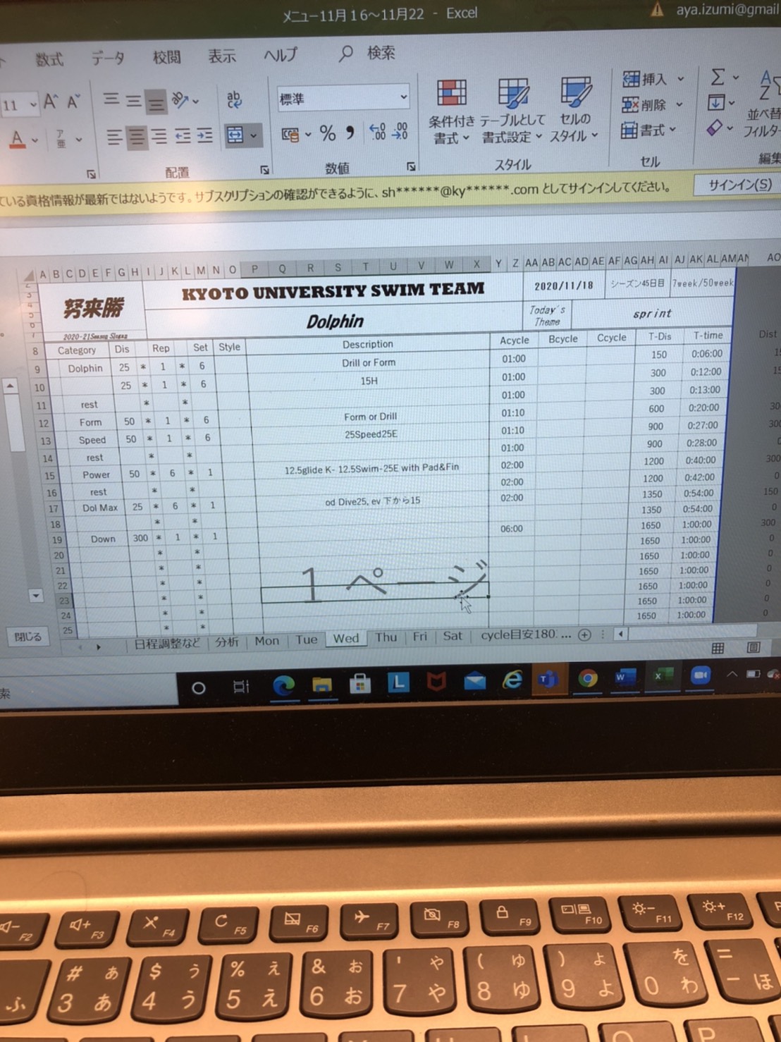 ドルフィンキックを意識したメニューでした。