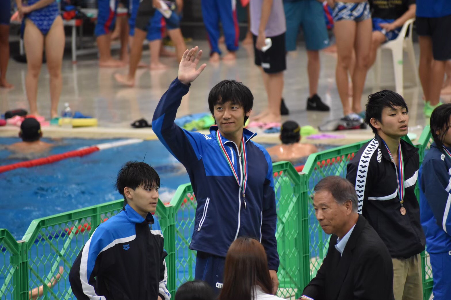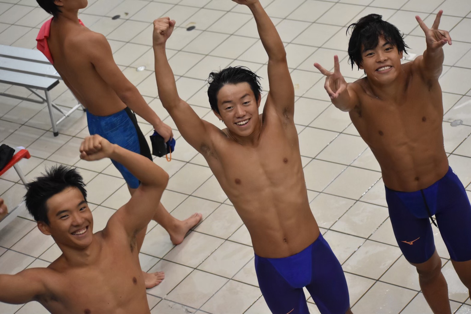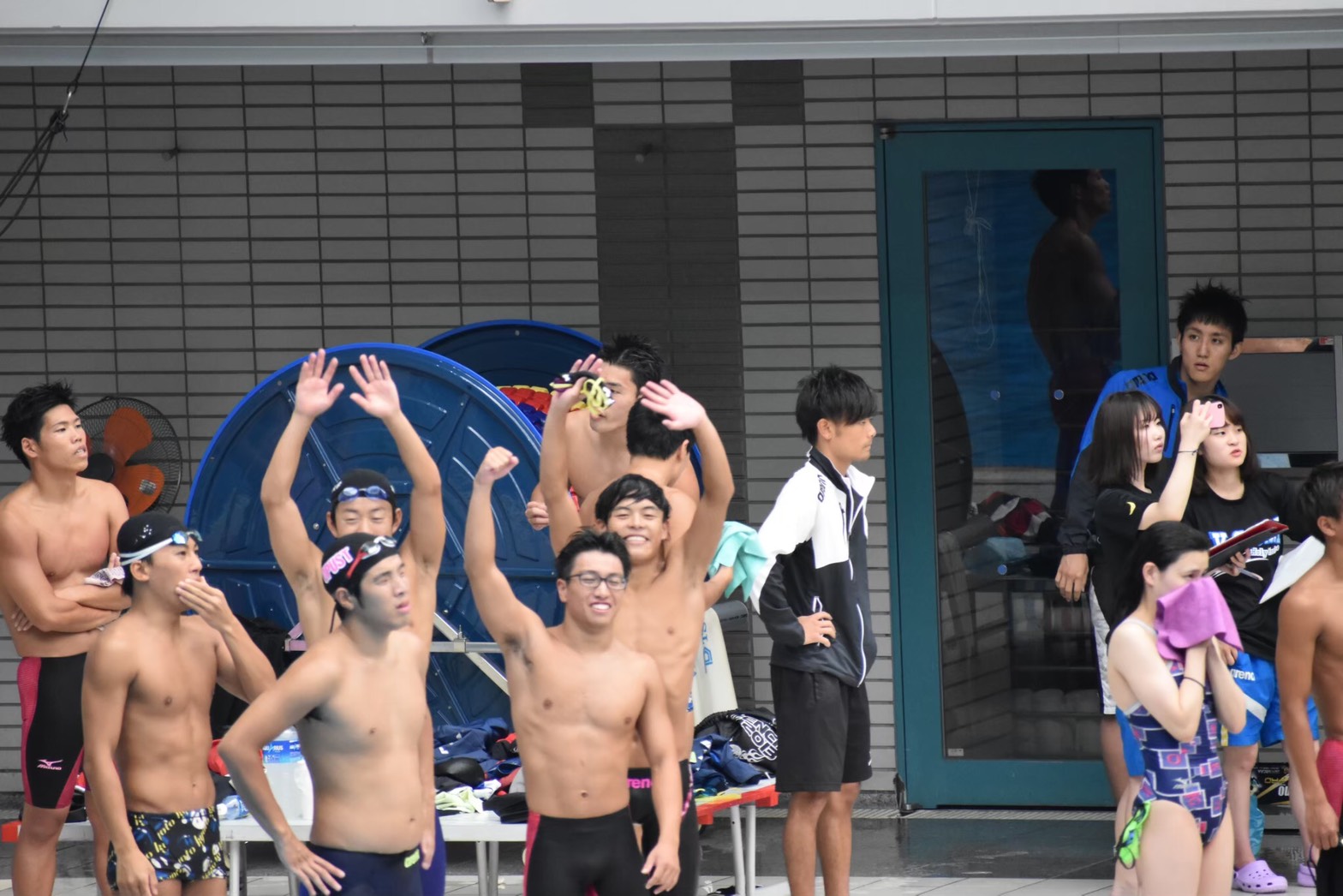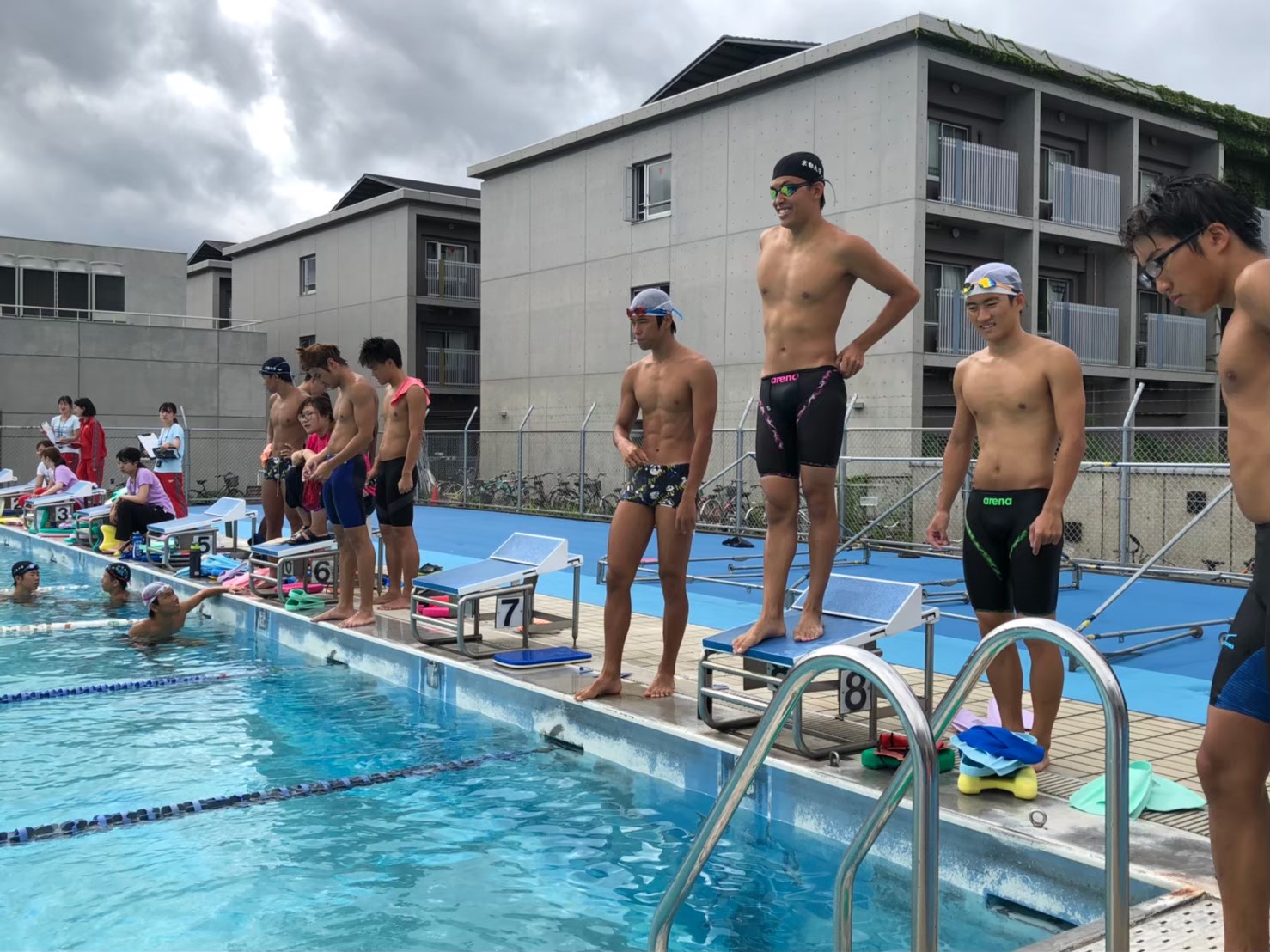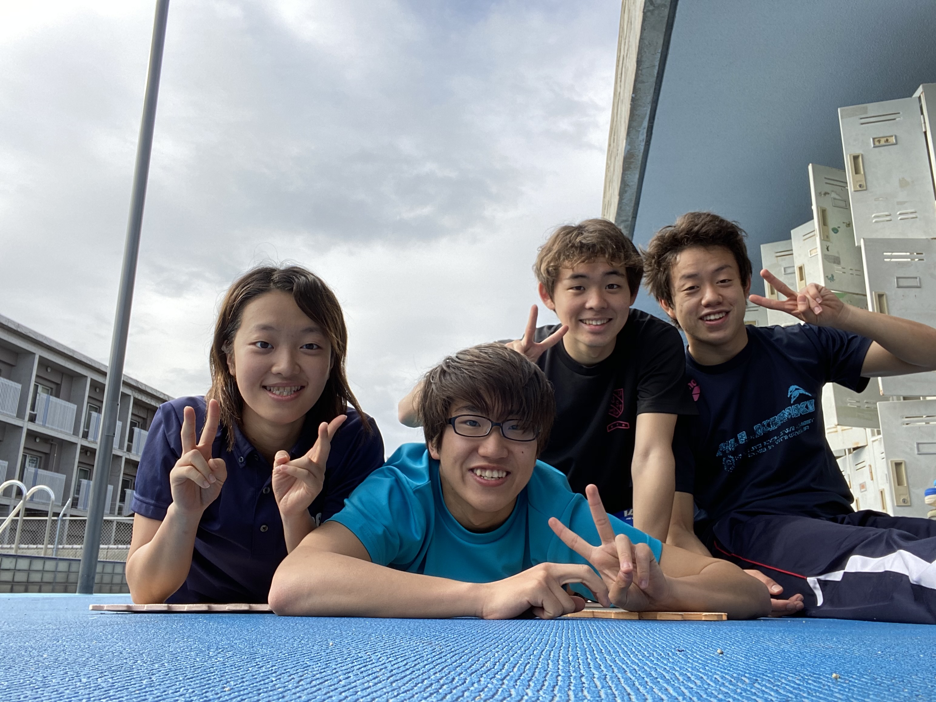 僕は入学当初、水泳部に入るつもりはあまりありませんでした。でもこのでっかいプールにすごく綺麗なプールサイドを見てここで泳ぎたいなと思って入りました。コロナが収束したら1回見に来て欲しいです。